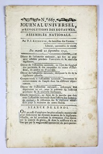 AUDOUIN, Pierre-Jean . Journal Universel, ou Révolution des Royaumes. Assemblee Nationale … Du 20 Septembre [..]