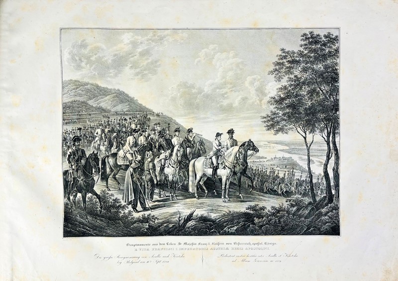 Rarissima edizione stampata a Bratislava. Opera più nota del canonico di Pressburg (l'odierna Bratislava) Elek Jordánszky che ricoprì varie posizioni accademiche e amministrative ecclesiastiche nel Regno d'Ungheria. Pubblicato a Bratislava (in latino Posonii) nel 1817 e 1836, consisteva in descrizioni biografiche associate a venti immagini raffiguranti momenti della vita dell'Imperatore Francesco I d'Austria e Re d'Ungheria.