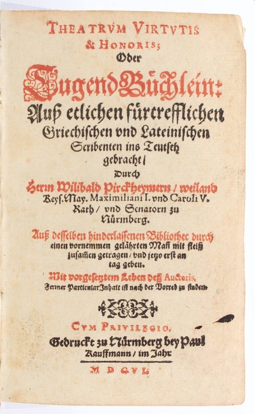 PIRCKHEIMER, Willibald. Theatrum virtutis & honoris.