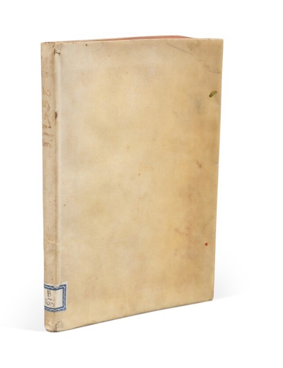 4to, mm. 211x144. Legatura piena pergamena floscia, titolo manoscritto ed etichetta di carta sul dorso. Pagine [8], 114, [6]. Marca sul Frontespizio, Iniziali e fregi xilografici.
