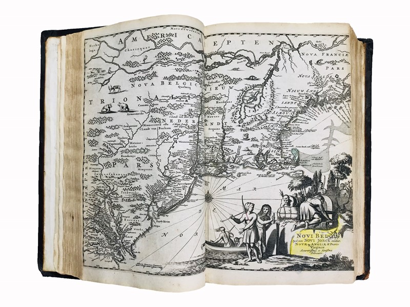 Rara prima edizione in prima tiratura. Una delle più importanti opere sull’America, magnificamente figurata. Borba de Moraes: “This is a classic book on America and is much sought after by collectors of Americana as it contains, on p. 124, one of the first views of New York Novum Amsterodamum”. Howes loda le illustrazioni “beauty and wealth of copperplates comparable only to De Bry”. Questa tiratura contiene il Ritratto di Jan Maurits di Nassau, non menzionato nell’Index finale. Nella parte che riguarda il Nord America contiene la mappa di Blaeu del New England e del New Netherland, nonché le carte della Virginia e della Carolina di John Smith Virginia; c’è inoltre una dettagliata carta delle Bermuda e numerose vedute di città e scene in Messico e nei Caraibi. Tra le incisioni nel testo: una delle prime vedute di New Amsterdam, a p. 124, secondo Asher “without any doubt, the handsomest, and... the most agreeable view of Dutch New York”; a pagina 213 l'incoronazione di Sir Francis Drake da parte dei nativi americani della California. Gran parte della seconda metà del volume è dedicata al Brasile, dove gli olandesi furono profondamente coinvolti per decenni nel XVII secolo.