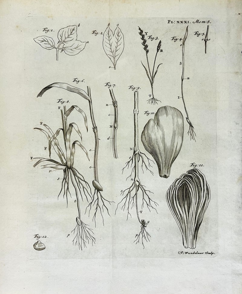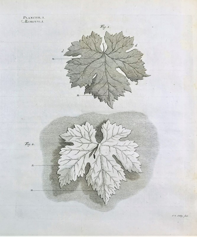 BONNET, Charles. Recherches sur l'usage des feuilles dans les plantes et sur quelques autres sujets relatifs à l'histoire de la végétation. Gottingue [Göttingen] and Leide[n], Elie Luzac, 1754