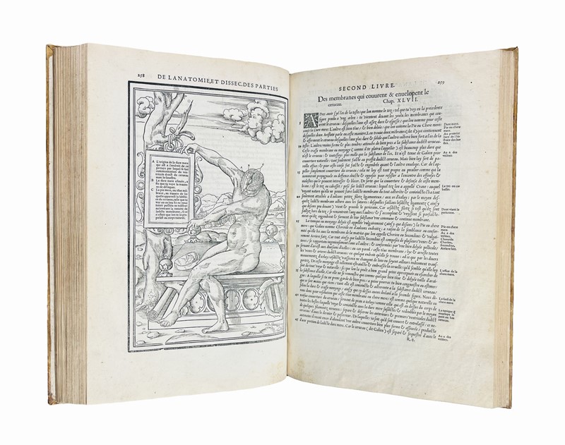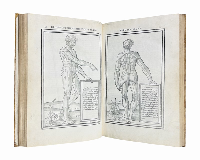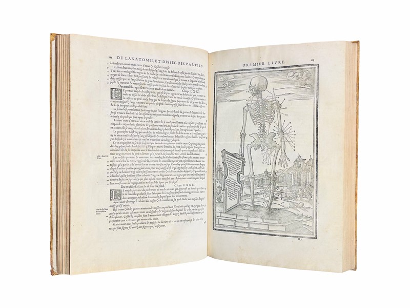 Prima edizione in francese. Una delle più importanti opere di anatomia del XVI secolo e il più raffinato libro di medicina a stampa del Rinascimento francese, tratto dall'edizione latina originale di Coline del 1545.