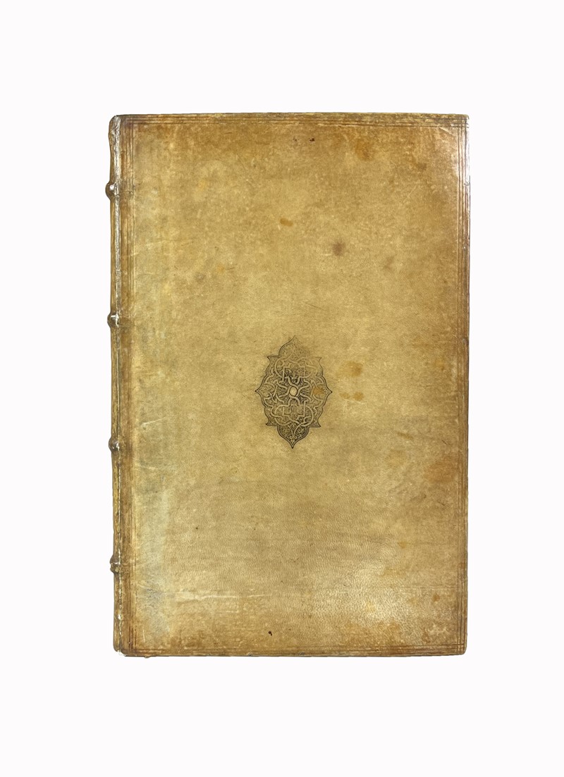 Folio, 361 x 232 mm. Legatura in piena pergamena antica, losanga decorata con nastri intrecciati e volute a motivi floreali al centro dei piatti. Pagine 16 non numerate, 405, (1). Grande marca tipografica al Frontespizio, Iniziali ornate su fondo nero criblé, carattere tondo e italico. 64 illustrazioni a piena pagina e 100 vignette nel testo, tutto impresso in xilografia. Iscrizione di mano coeva al Frontespizio. Tracce d’uso e fioriture sui margini, in complesso buon esemplare con ampi margini.