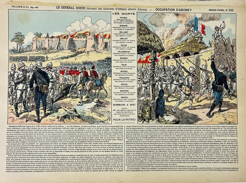 Epinal. Second Franco-Dahomean War (Conquest of Benin). 1892. Two colored lithographs.