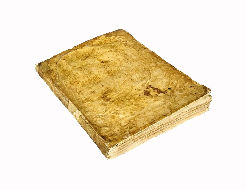 4to; 238x180 mm. Legatura in piena pergamena. Cc. [16], 107, [1]. Marca tipografica al frontespizio. Iniziali e fregi xilogr. Caratteri greci. Gora d’umidità su diverse carte. Buon esemplare.