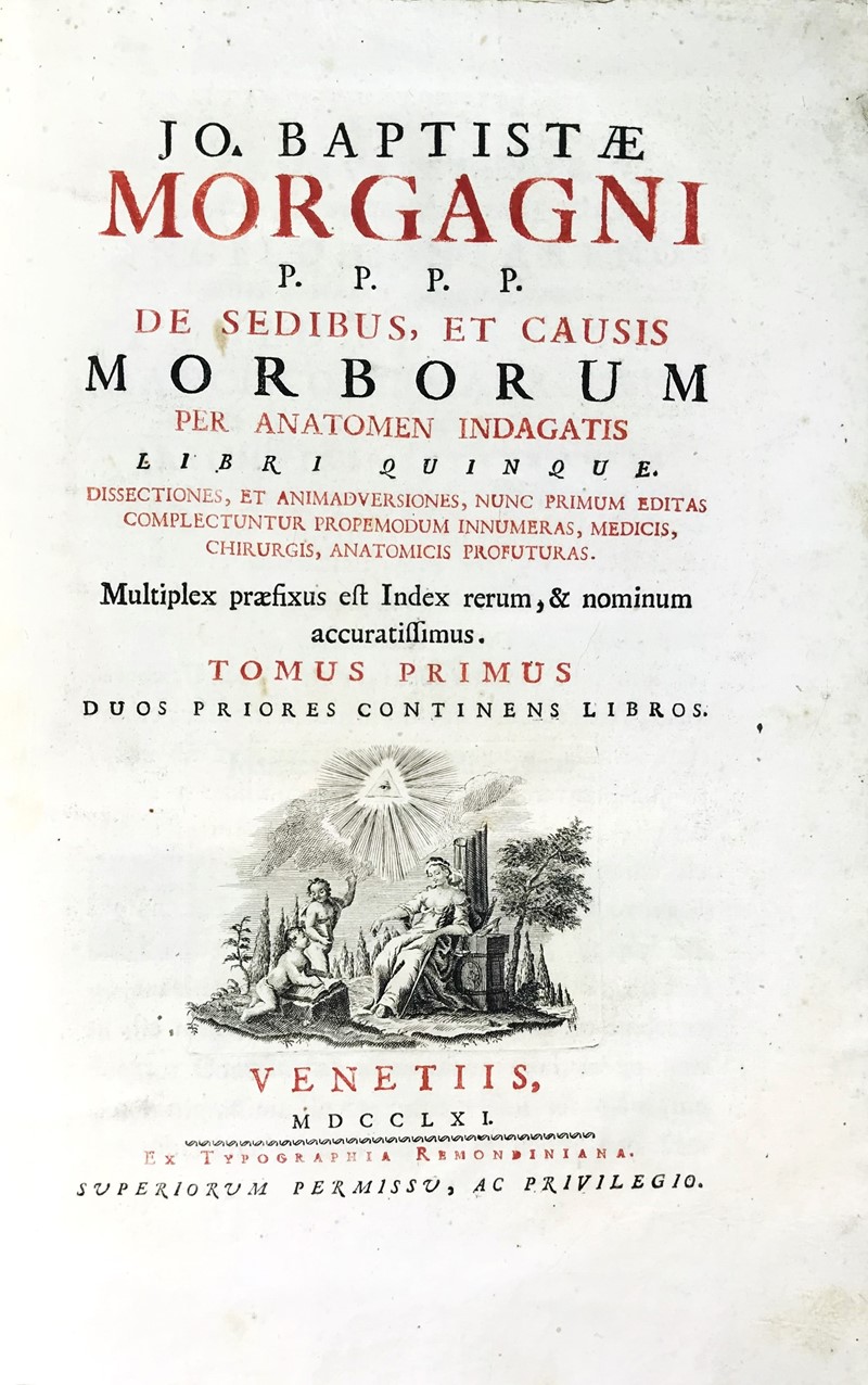 First edition, first issue of Morgagni's main work and one of the most important books in the history of medicine.