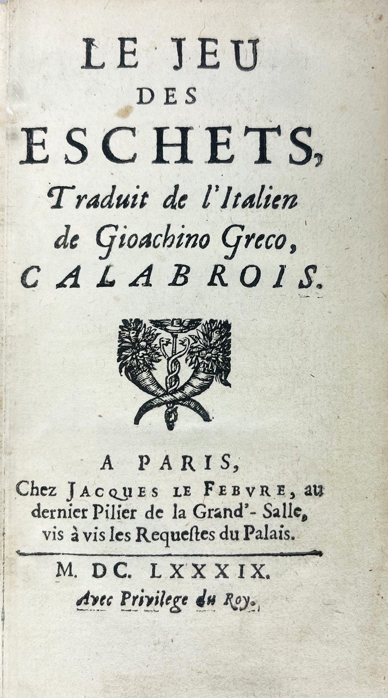 GRECO, Gioachino. Le jeu des eschets, Traduit de l'Italien de Gioachino Greco Calabrois.