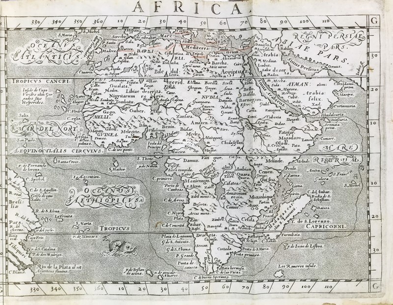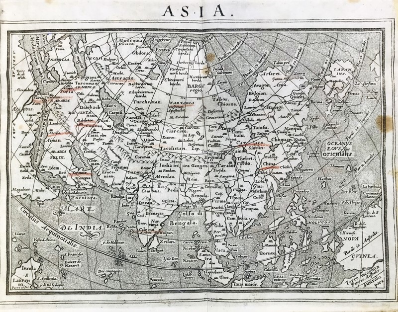 Bella edizione con le mappe dei quattro continenti incise da Giuseppe Rosaccio. Di particolare interesse è la mappa dell'America che deriva dalla mappa delle Americhe di Giovanni Lorenzo d'Anania del 1582 e ulteriormente basata sulla geografia di Ortelius. Notevole il caratteristico rigonfiamento della costa occidentale del Sud America e dell'enorme continente meridionale che si collega alla Nuova Guinea. Anian e Quivira compaiono sulla costa occidentale del Nord America. Giovanni Botero (1544 – 1617) fu considerato per più di un secolo il miglior geografo esistente. Borba de Moraes I, 114: “For more than a century considered the best geographer in existence”. Dizionario Biografico degli Italiani, vol. 13. L’opera è un'ampia raccolta di notizie storiche, geografiche e politiche di tutte le parti del mondo conosciuto, compresi gli aspetti religiosi.