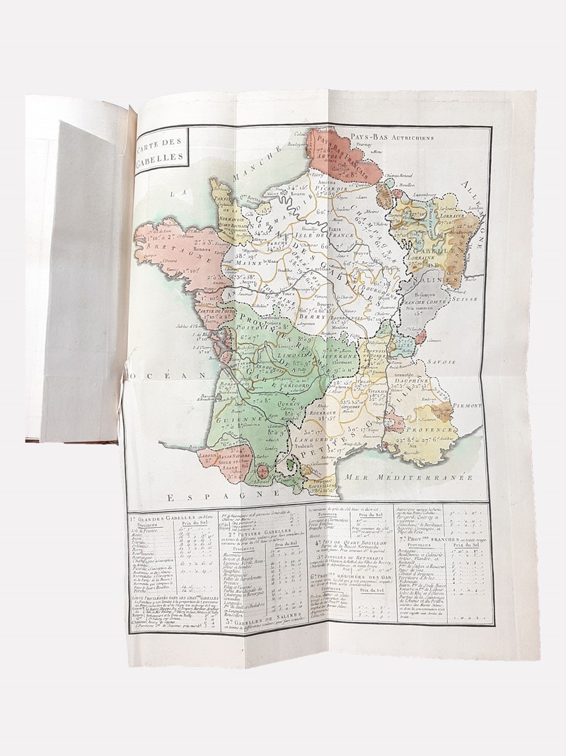 Opera illustrata con 3 Ritratti di cui 2 in Antiporta, due Antiporte con Allegorie, 6 tavole fuori testo intitolate La Bienfaisance, La Vertu Récompensée, Dédié au Regret du Citoyen, L'Immortalité, Compte Rendu du Roi et Allégorie du Compte Rendu du Roi. Inoltre 2 Carte geografiche a colori “Gabelles” e “Traites”.