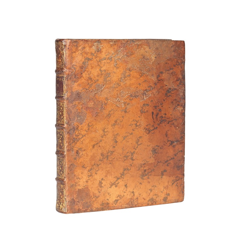 4to. 240x190 mm. Legatura coeva in pelle di vitello screziata, tassello con titolo e fregi in oro sul dorso a cinque nervi, sguardie in carta marmorizzata policroma, tagli rossi. Pagine [2], 322, [1, con le istruzioni per il legatore], 1 bianca. Frontespizio in rosso e nero con vignetta incisa in rame, 5 tavole incise in rame ripiegate fuori testo. Ex-libris di antico possessore manoscritto sul Frontespizio “Leboue”. Bell’esemplare.