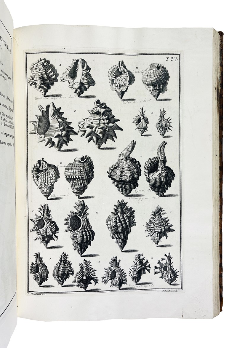 Rara prima edizione splendidamente figurata. L’opera, di notevole interesse scientifico, descrive dettagliatamente centinaia di conchiglie e coralli del museo personale del celebre naturalista, professore di medicina a Pisa e medico di Cosimo III de' Medici. L'importanza di questa collezione è testimoniata anche dal fatto di essere stata oggetto di studio da parte di Linneo, che nella decima edizione del Systema Naturae utilizzò molte di queste conchiglie come "tipo" su cui confrontare gli esemplari da classificare.