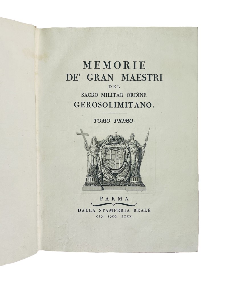 PACIAUDI, Paolo Maria. Memorie de' gran Maestri del Sacro Militar Ordine Gerosolimitano. Tomo primo (-terzo).
