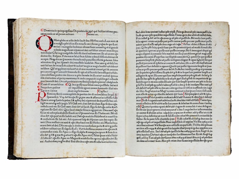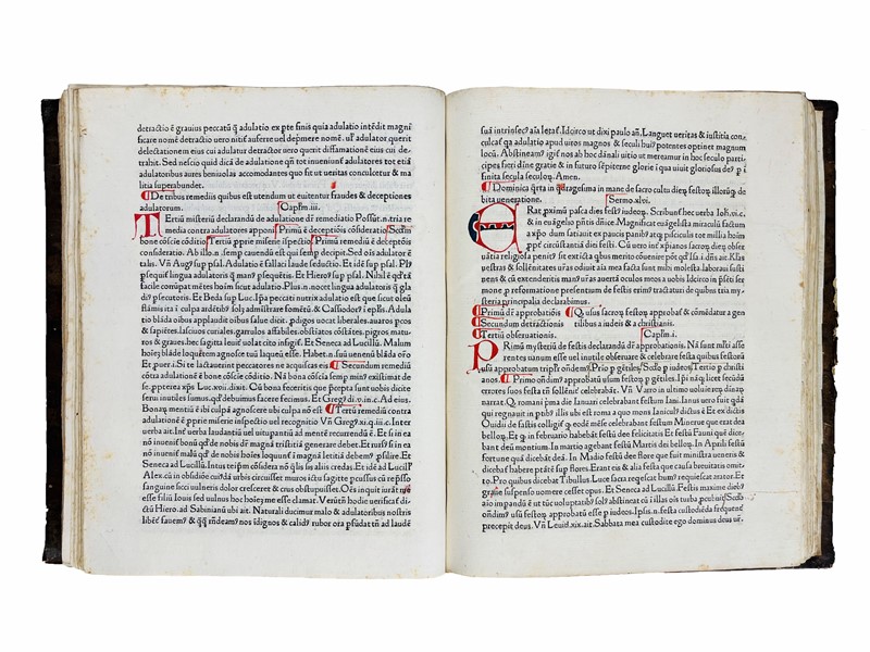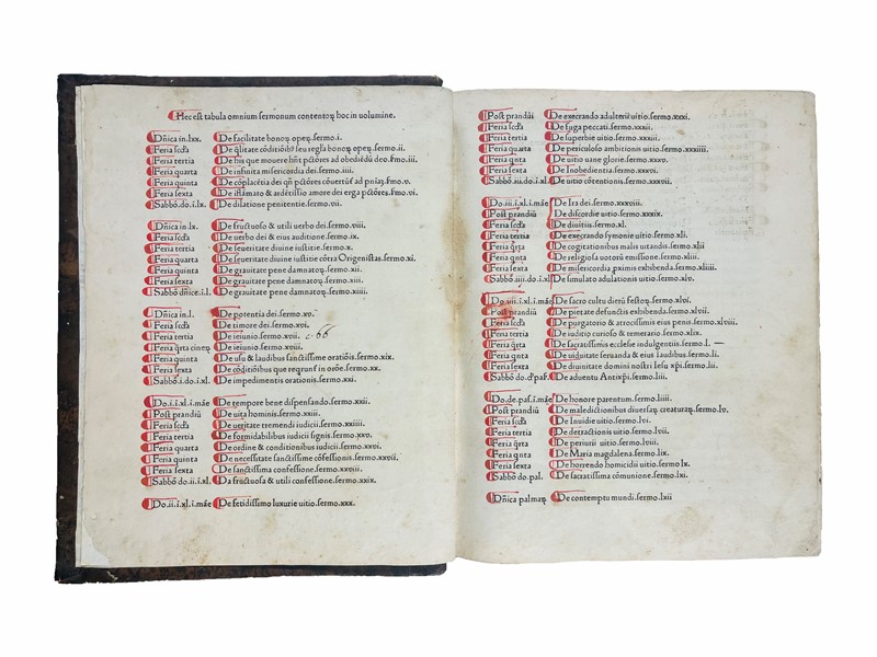 Rarissimo incunabolo, esemplare con iniziali miniate e rubricate in rosso e in blu. In questi Sermoni Quadragesimali, un ciclo di sermoni per la predicazione durante la Quaresima, Caracciolo si concentra su temi penitenziali e invita al pentimento, appropriati per il periodo. Il ciclo include il suo sermone, "Sull'infedeltà dei seguaci di Maometto", un raro esempio di polemica cristiana contro l'Islam all'interno di un ciclo di sermoni.