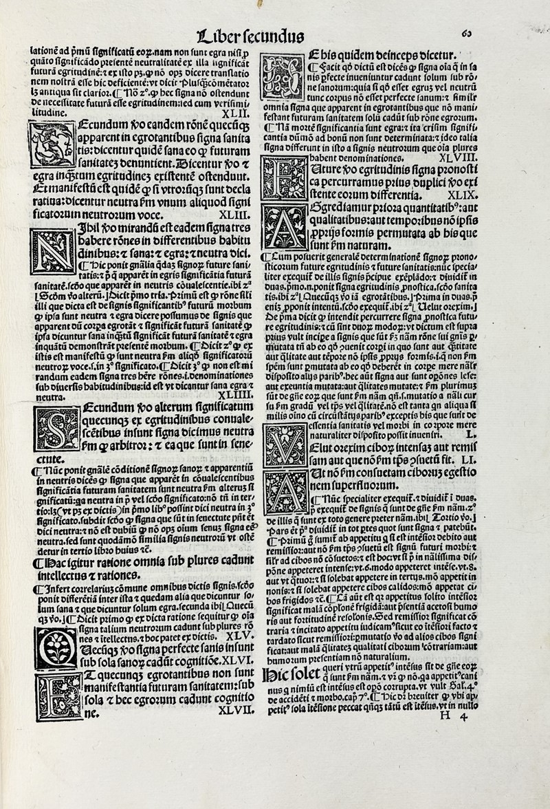 Folio; 310x220 mm. Legatura moderna in piena pergamena. Cc. 93. Colophon a carta 93v: “Venetijs, impensa heredum quondam domini Octauiani Scoti Modoetiensis; ac sociorum, 19 Ianuarij 1518” .Sotto la marca tipografica con iniziali O.S.M. Testo su due colonne, carattere gotico. Numerose iniziali xilografiche, molte su fondo criblé. Alcuni marginalia di mano antica. Bell’esemplare.