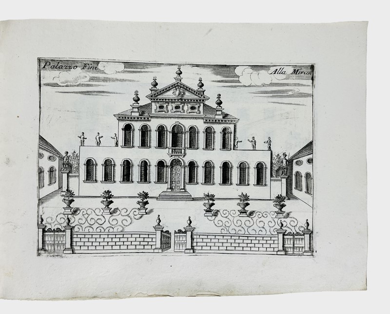 Rarissima prima edizione. Armao, n. 90: 'Per essere questa la più antica opera con vedute di palazzi e di ville venete molte delle quali poi demolite o rimaneggiate, lo storico di architettura ci troverà largo campo di osservazioni e studii'.