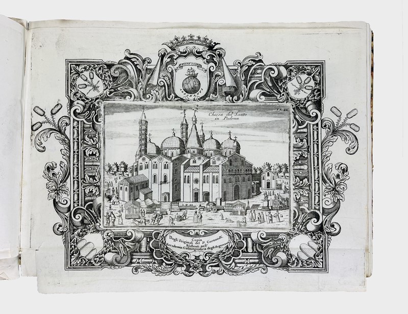 Si tratta di una bella raccolta di tavole incise in rame, alcune entro ricca cornice barocca, sulle celebri ville venete, fra le quali alcune architetture del Palladio. Contiene inoltre 8 tavole ripiegate che raffigurano Padova, con carte topografiche, vedute di Padova, chiese e basiliche. Il volume si apre con le 2 tavole che rappresentano la laguna congelata (datate 1708), probabilmente per l'eccezionale freddo dei mesi di gennaio e febbraio 1709.