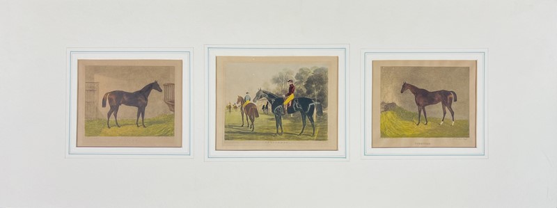 Belle tavole raffiguranti cavalli inglesi con in calce il nome di ciascun animale. Le tavole raffigurano i quadrupedi sia da soli che sormontati da fantini in occasioni di gare e competizioni agonistiche. Le tavole sono incise da diversi incisori inglesi dell’epoca.