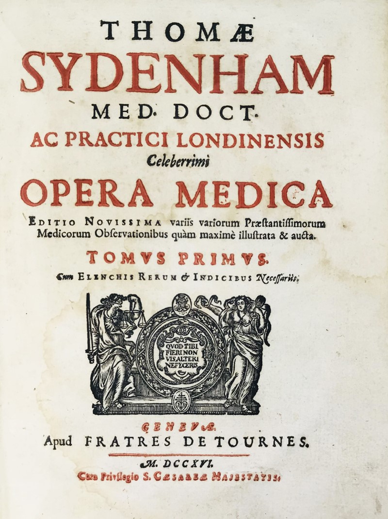 Rara edizione della raccolta di opere di Sydenham, contenente una serie di dissertazioni sulle epidemie in varie città e regioni dell'Europa continentale durante la fine del XVII e l'inizio del XVIII secolo. Tra gli autori rappresentati ci sono Ramazzini, Lister, Hamilton, Drelincourt e molti altri.