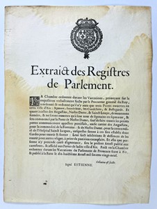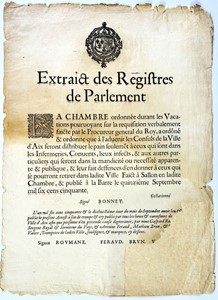 Plague in Provence. Three leaflets issued by the Parliament of Provence regarding the plague in Provence, 1629