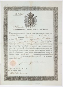 1. Portugal. Bill of health. Lisbona, 30 gennaio 1837 Folio. 410x300 mm. Foglio a stampa con parti manoscritte. [..]