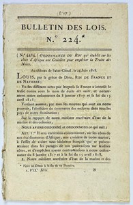 LOUIS XVIII . «Ordonnance du Roi qui établit sur les Côtes d’Afrique une croisière pour empêcher la Traite des [..]