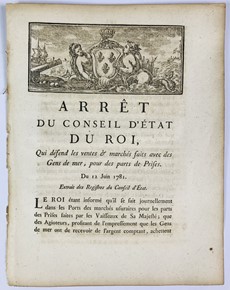 LOUIS XVI . Arrêt du conseil d’État du Roi, qui défend les ventes & marchés faits avec les Gens de mer, [..]
