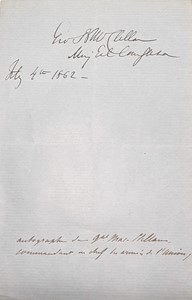 George Brinton McCLELLAN. Firma autografa. July 4th 1862 Un foglio in 8vo su carta azzurra. 206x133 [..]