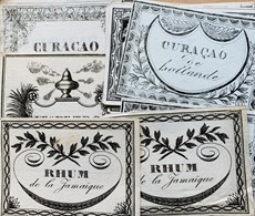 17 Etichette Antiche di Alcolici e Profumi .  Fine XVIII secolo Incisioni in xilografia. Misure diverse, [..]