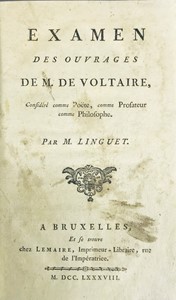 LINGUET. Examen des ouvrages de M. de Voltaire, 1788